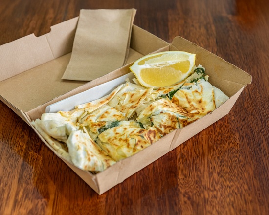 Lamb, Spinach and Tasty Cheese$12Traditional authentic Gozleme (Turkish style pastry bread with filling). Halal Certified. (PLEASE NOTE - These are set combinations and NO ingredients can be removed NOR added)Chicken, Mushroom and Tasty Cheese$12Traditional authentic Gozleme (Turkish style pastry bread with filling). Halal Certified (PLEASE NOTE - These are set combinations and NO ingredients can be removed NOR added)Spinach and Feta Cheese$11Traditional authentic Gozleme (Turkish style pastry bread with filling). Halal Certified. (PLEASE NOTE - These are set combinations and NO ingredients can be removed NOR added)Chips / Wedges / Nuggets