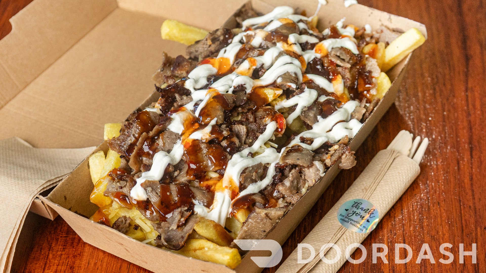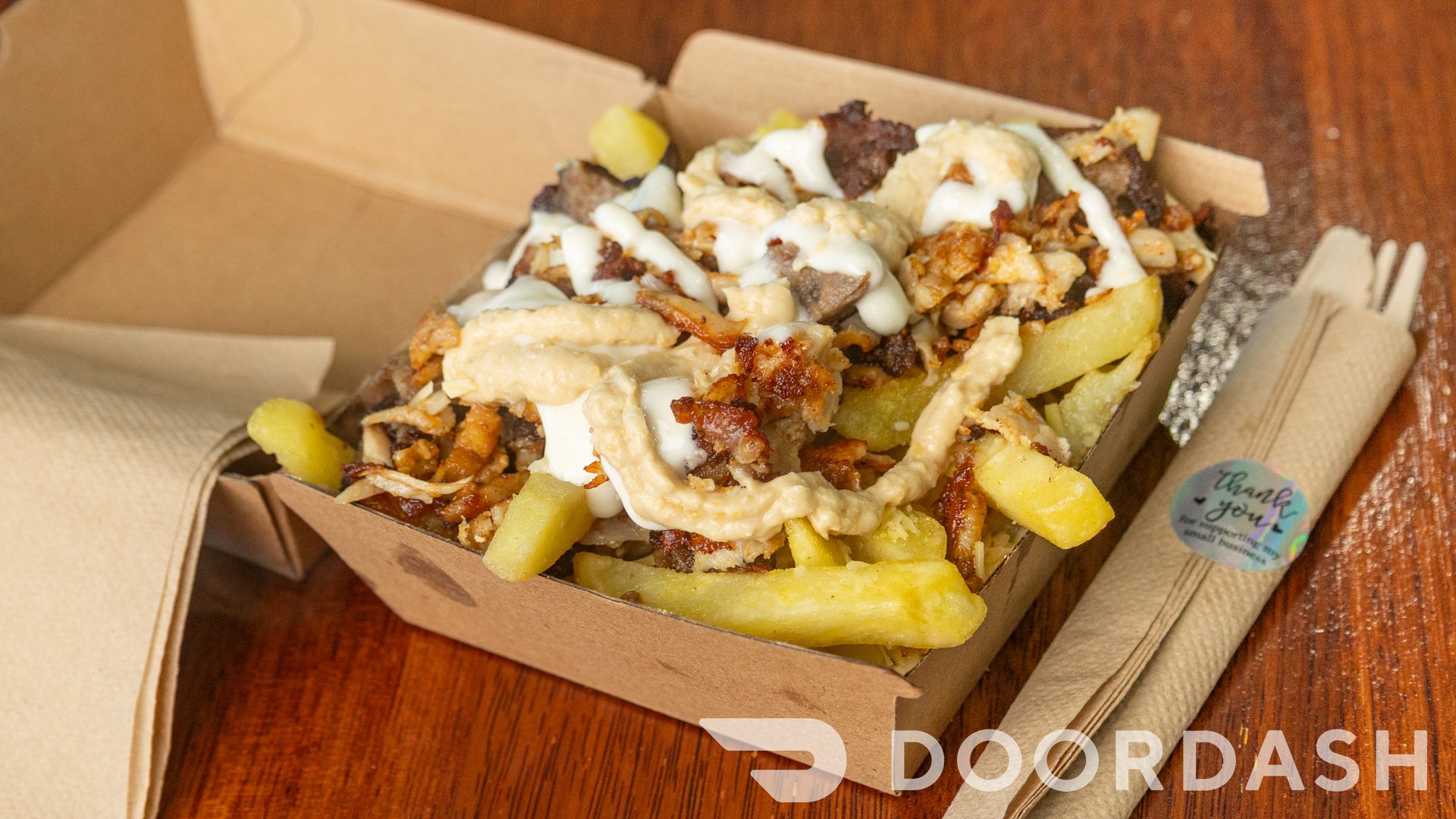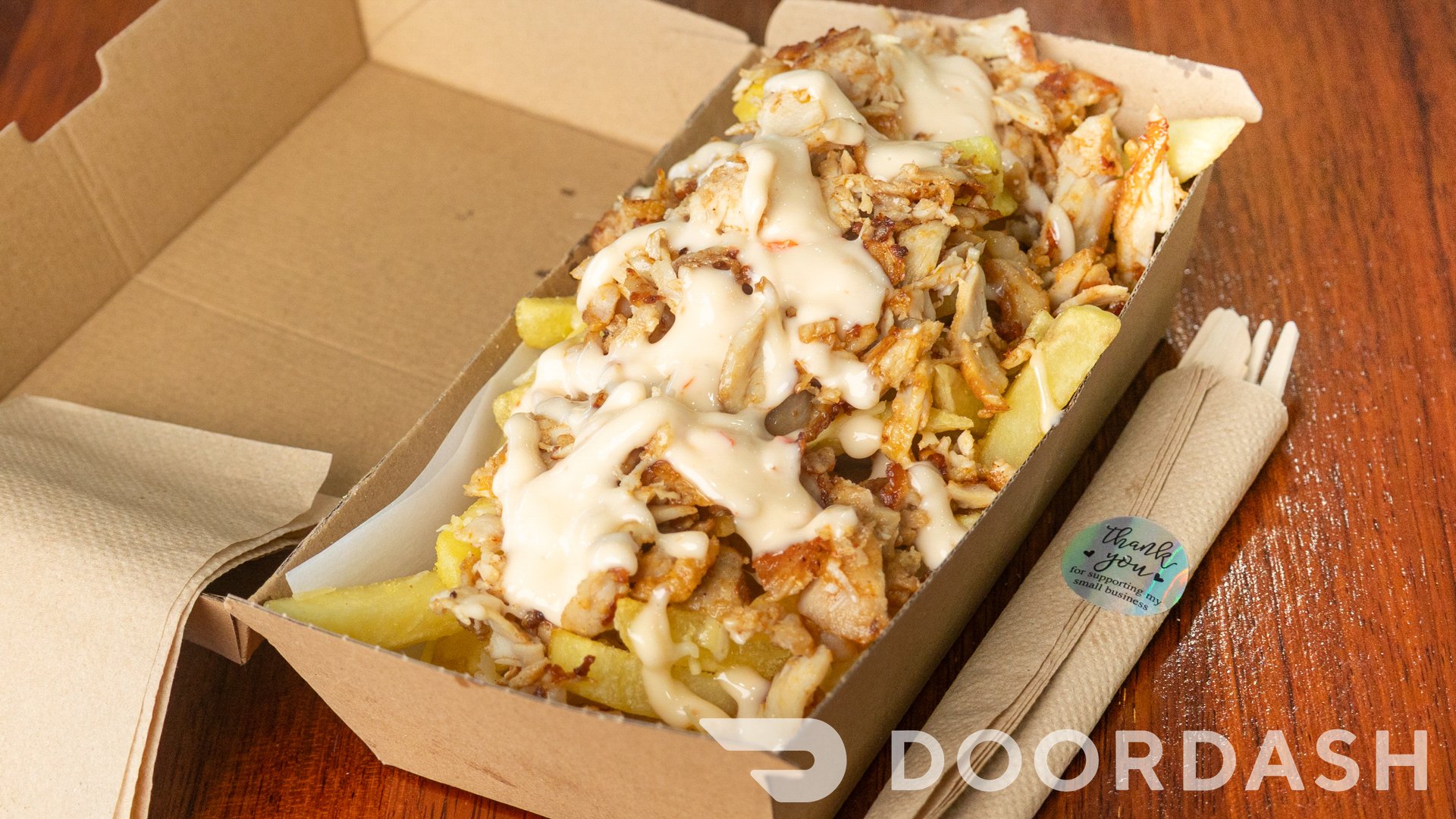 LargeYummy hot chips with chicken salt (or customise) and topped with cheese and your protein choice.×