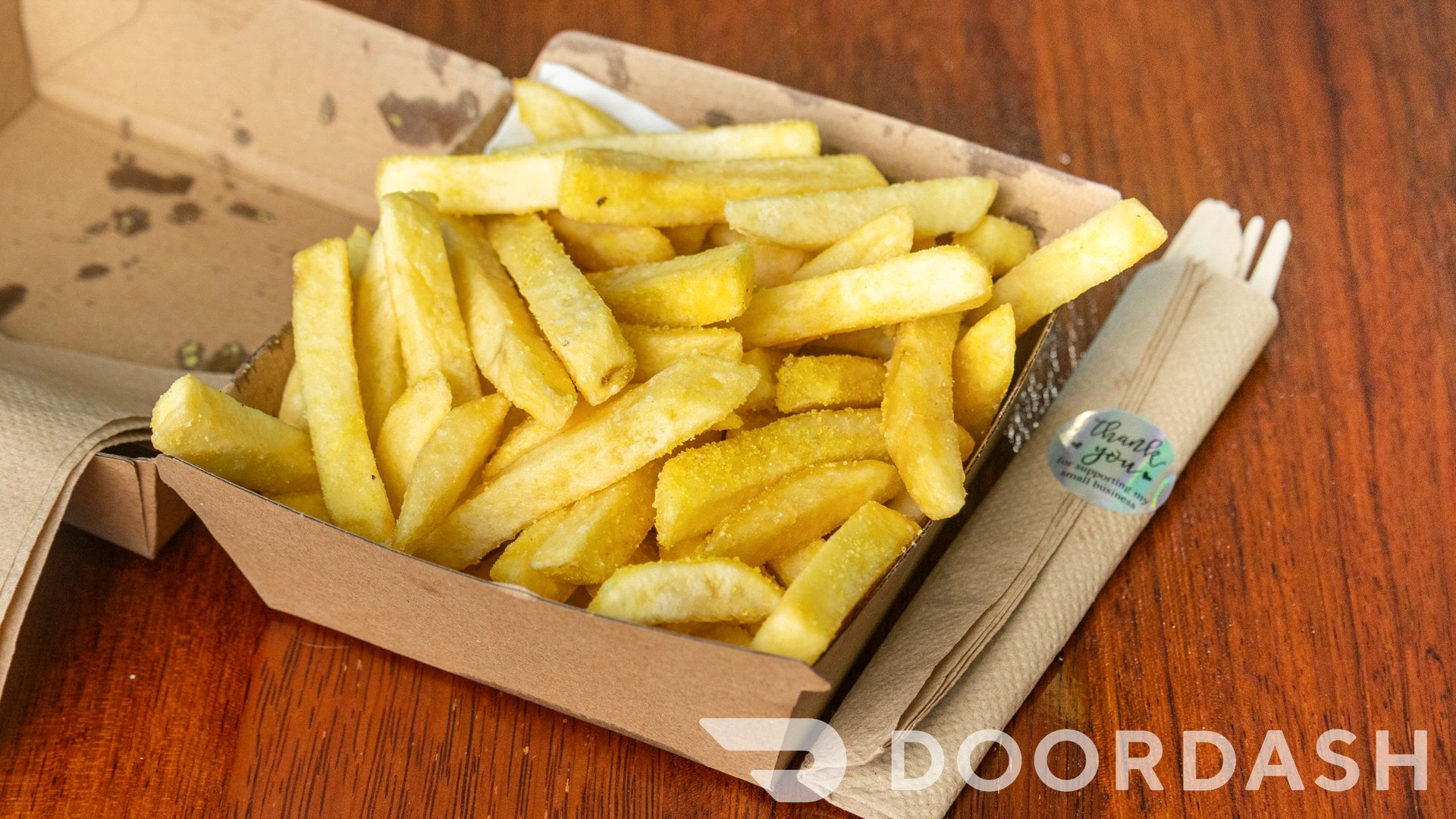 Yummy hot chips with chicken salt (or customise) and topped with cheese and your protein choice.Choose one