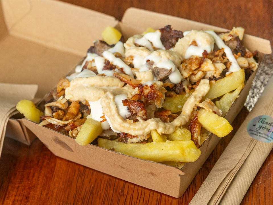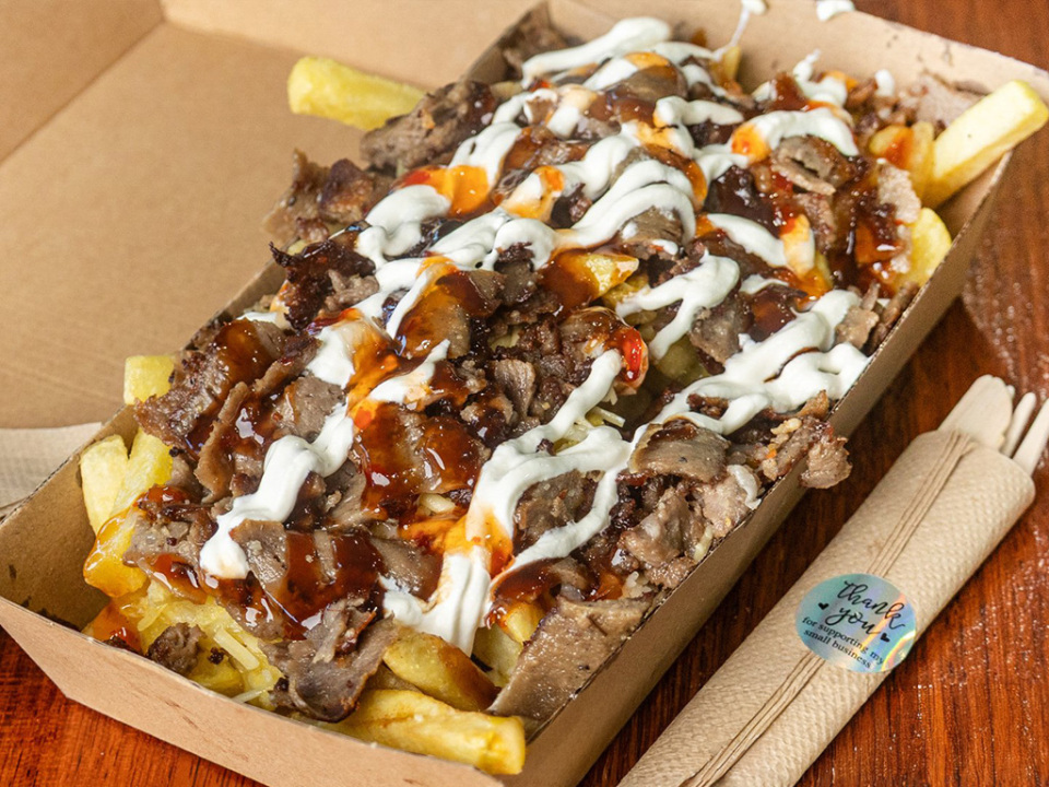 LargeYummy hot chips with chicken salt (or customise) and topped with cheese and your protein choice.×